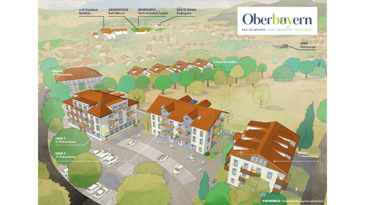 In Bad Heilbrunn – dem Heilklima-Kurort in Toplage zwischen München, Bad Tölz und den Alpen – entsteht mit der Neuen Ortsmitte ein einzigartiges Wohnquartier.